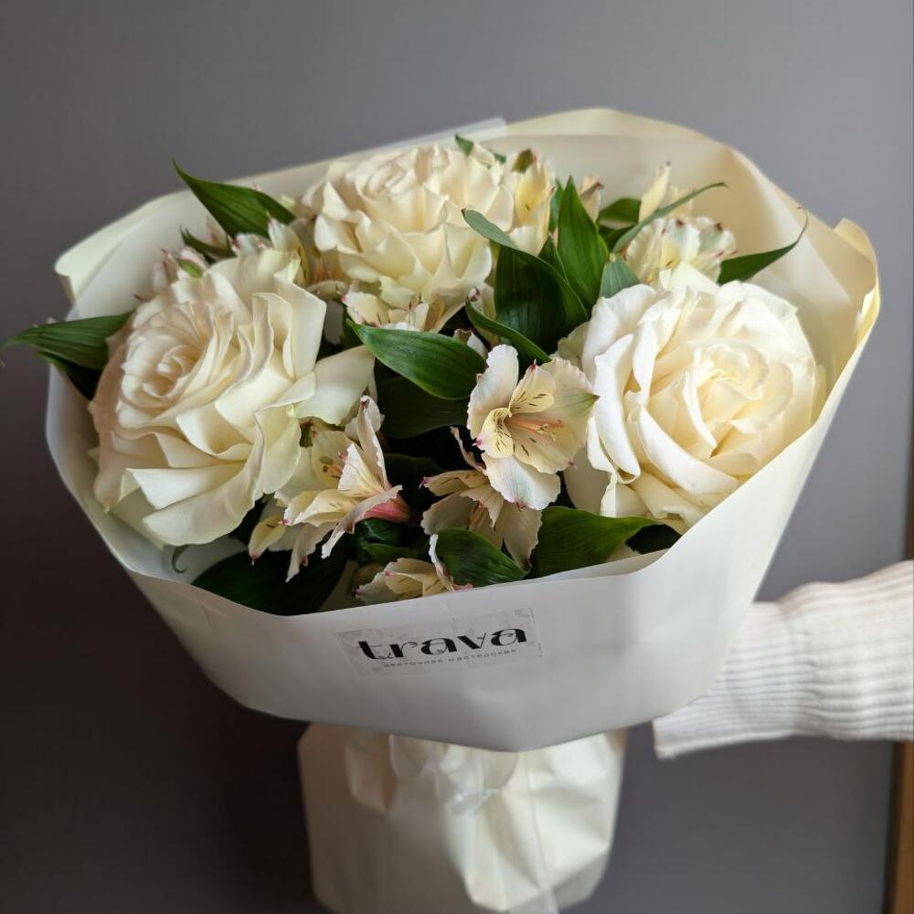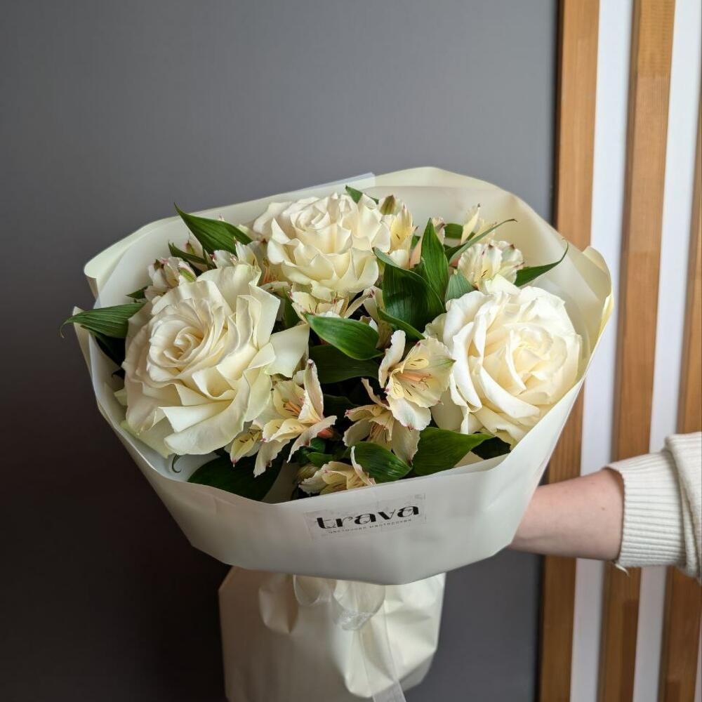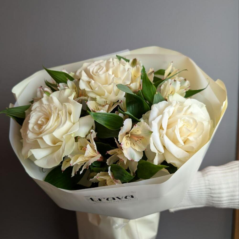 Букет из роз и альстромерии для любимой девушки на 8 марта .